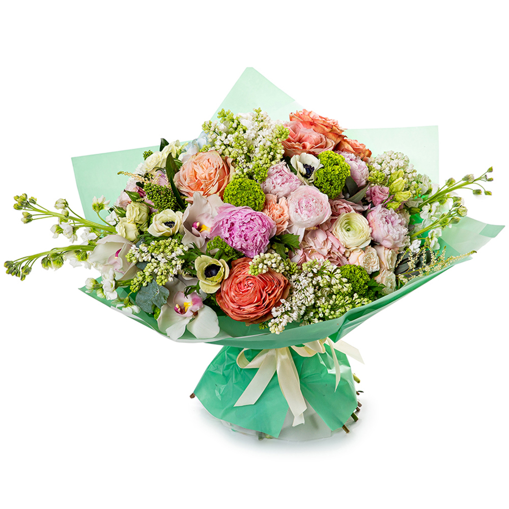Букет с пионами и маттиолой