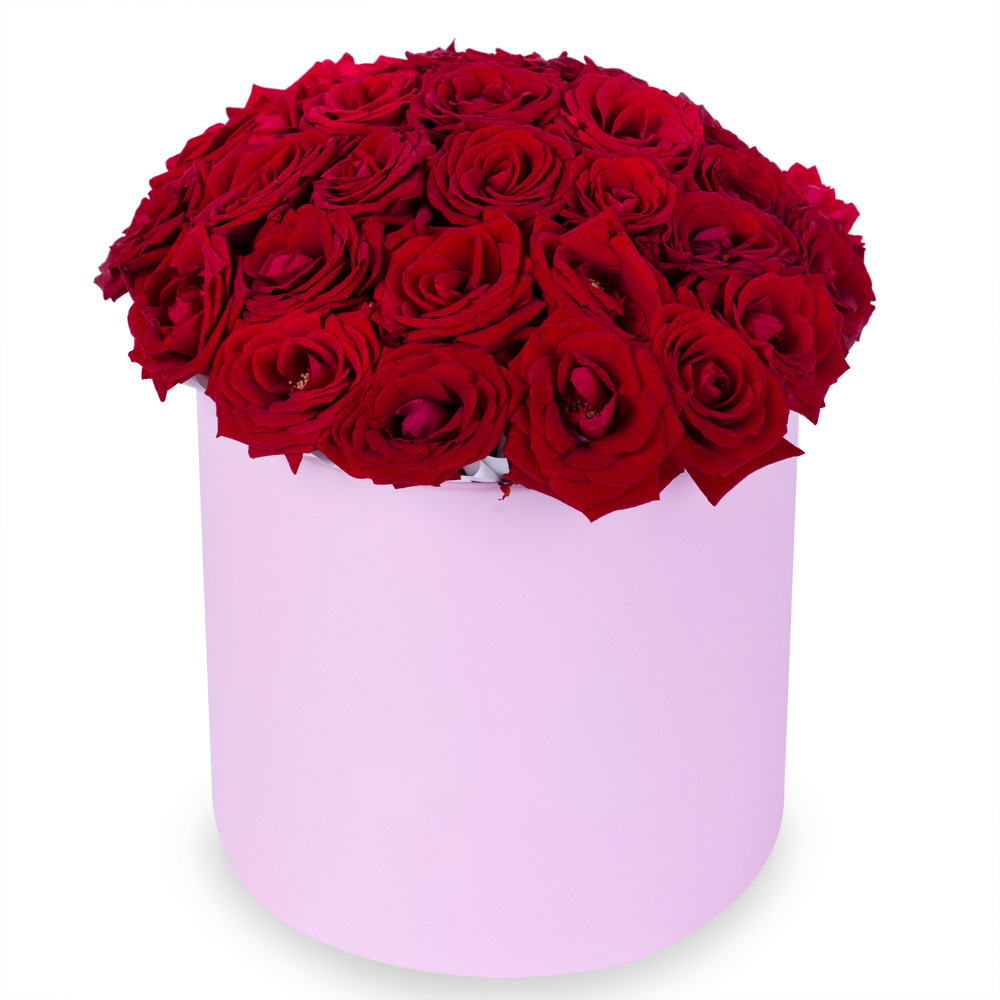 25 роз premium в розовой шляпной коробке