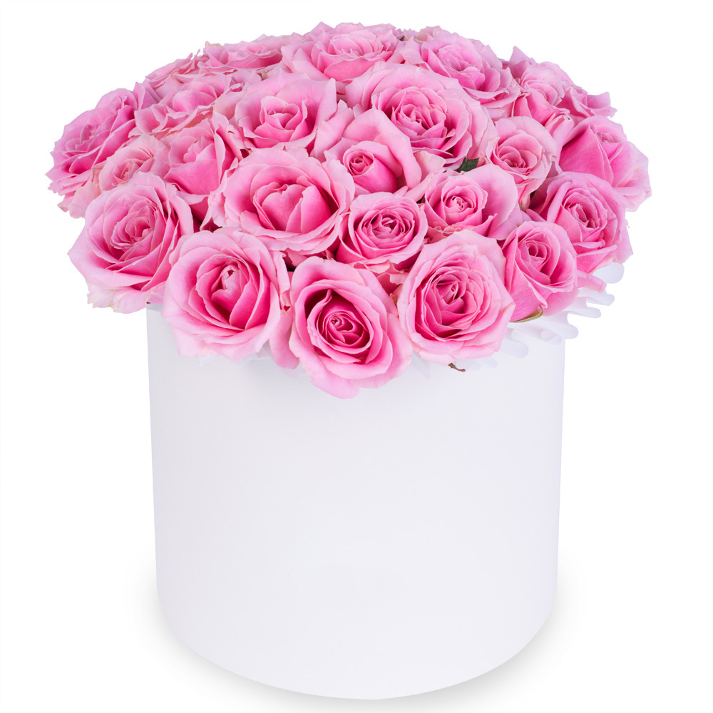 25 розовых роз premium в кремовой шляпной коробке