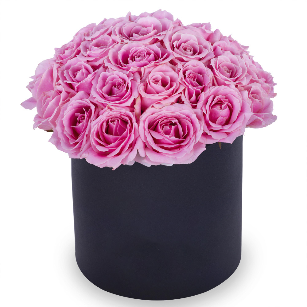 Букет из 35 розовых роз premium в черной шляпной коробке