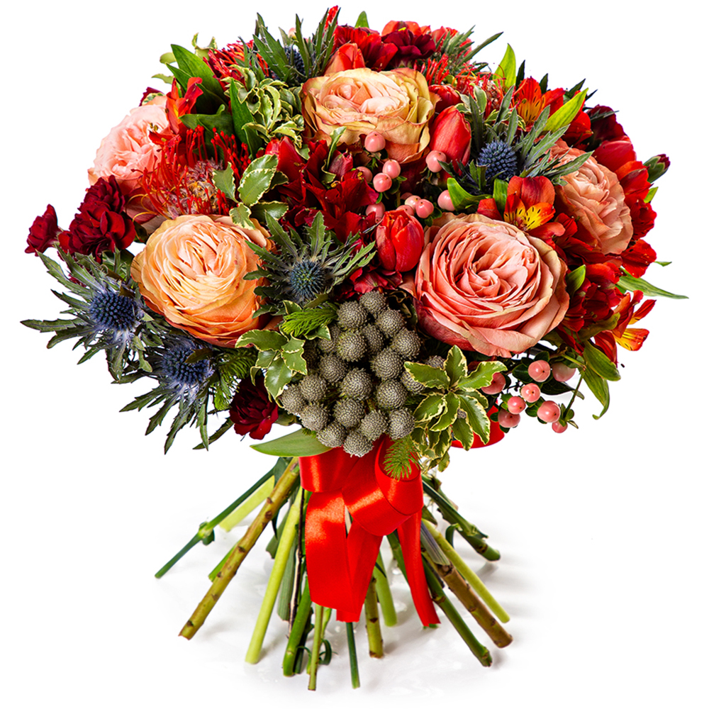 Букет с розами и эрингиумом