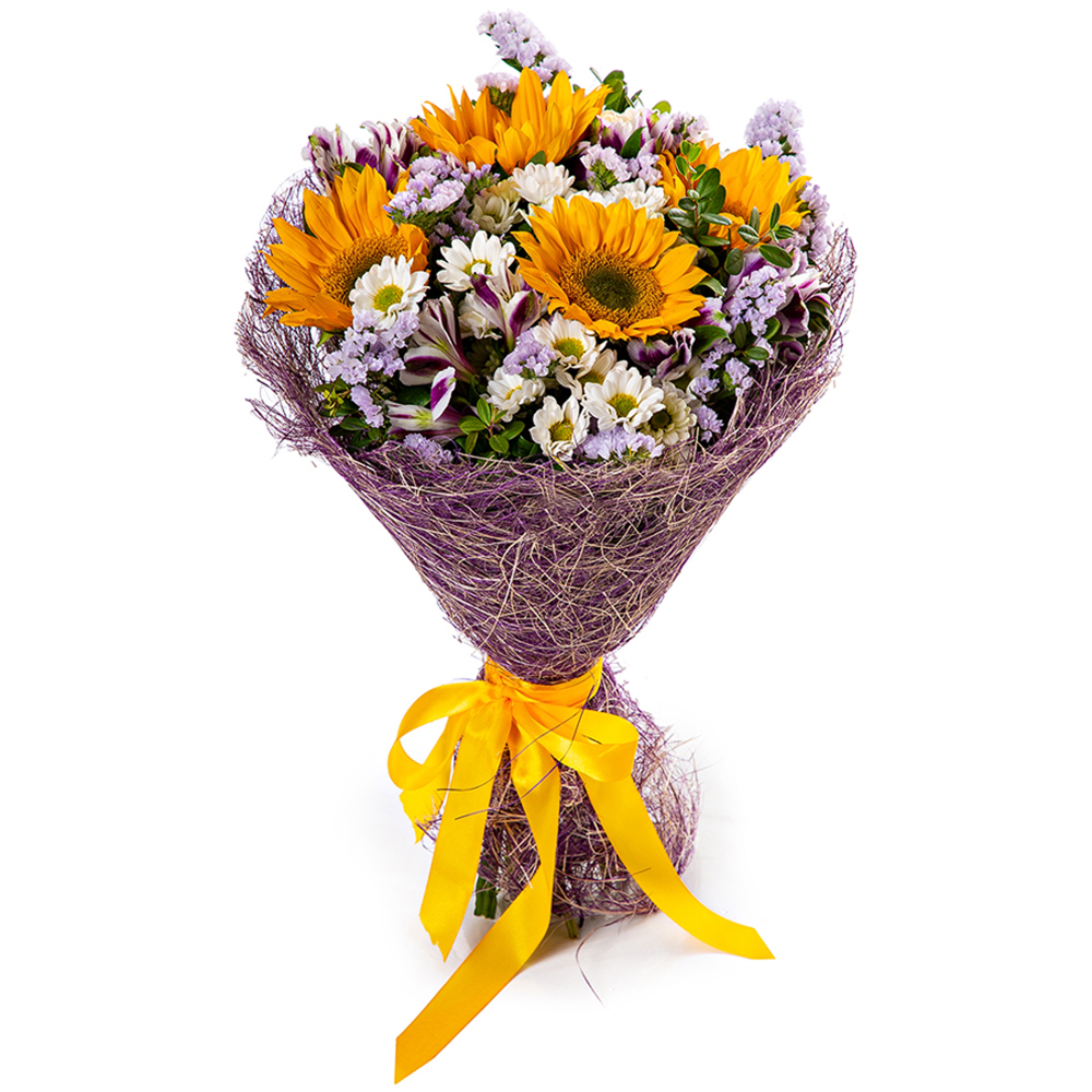 Букет с гелиантусом и сантини