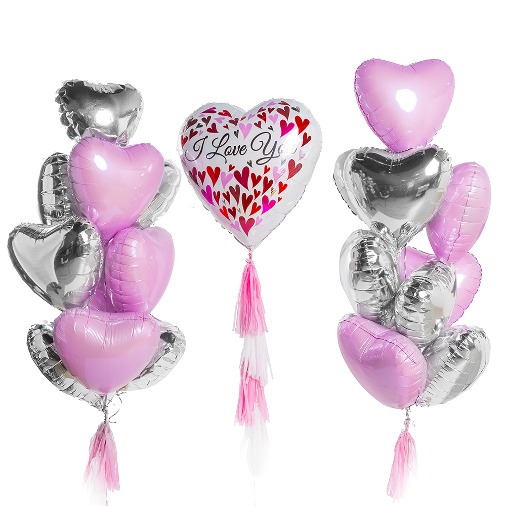 Фольгированное сердце серебро, 45 см — 5 шт.