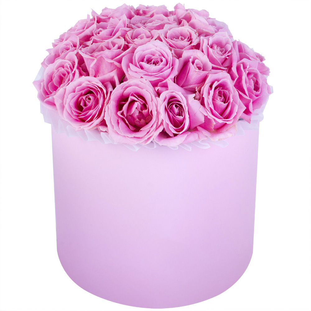Букет из 21 розовой розы premium в розовой шляпной коробке