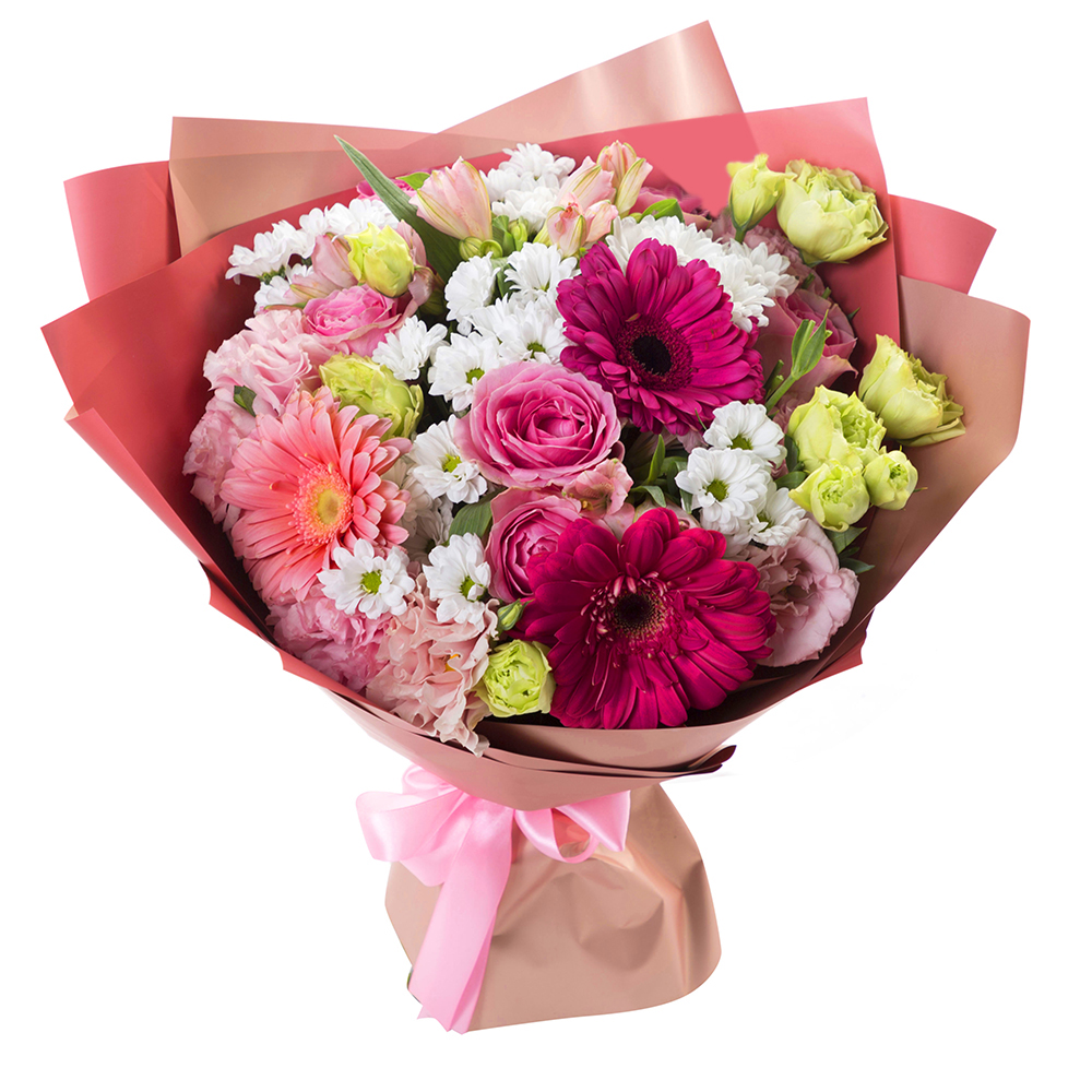 Букет из гербер, роз альстромерий и хризантем