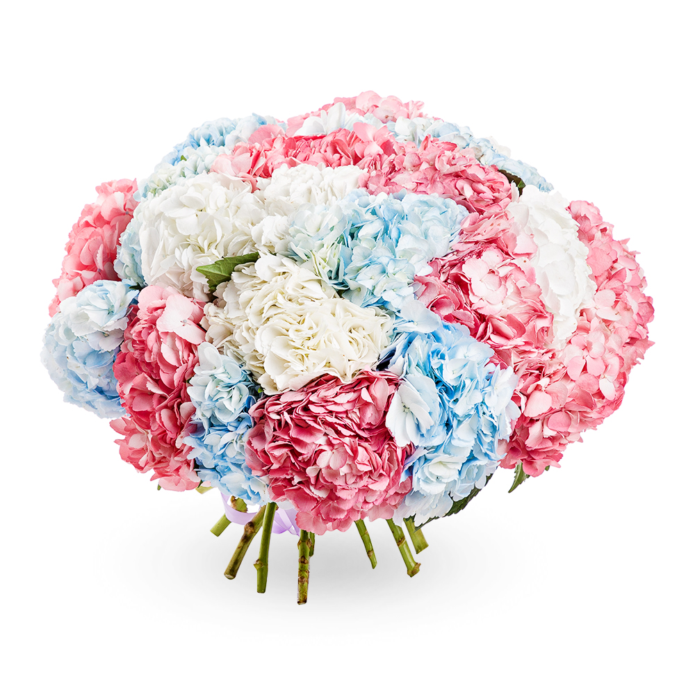 Букет из 25 разноцветных гортензий