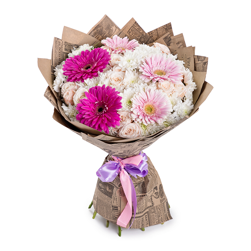 Букет из хризантем, роз и гербер