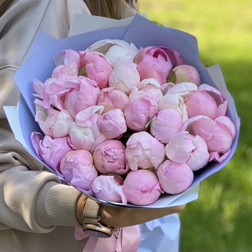 Букет из 25 нежно-розовых пионов
