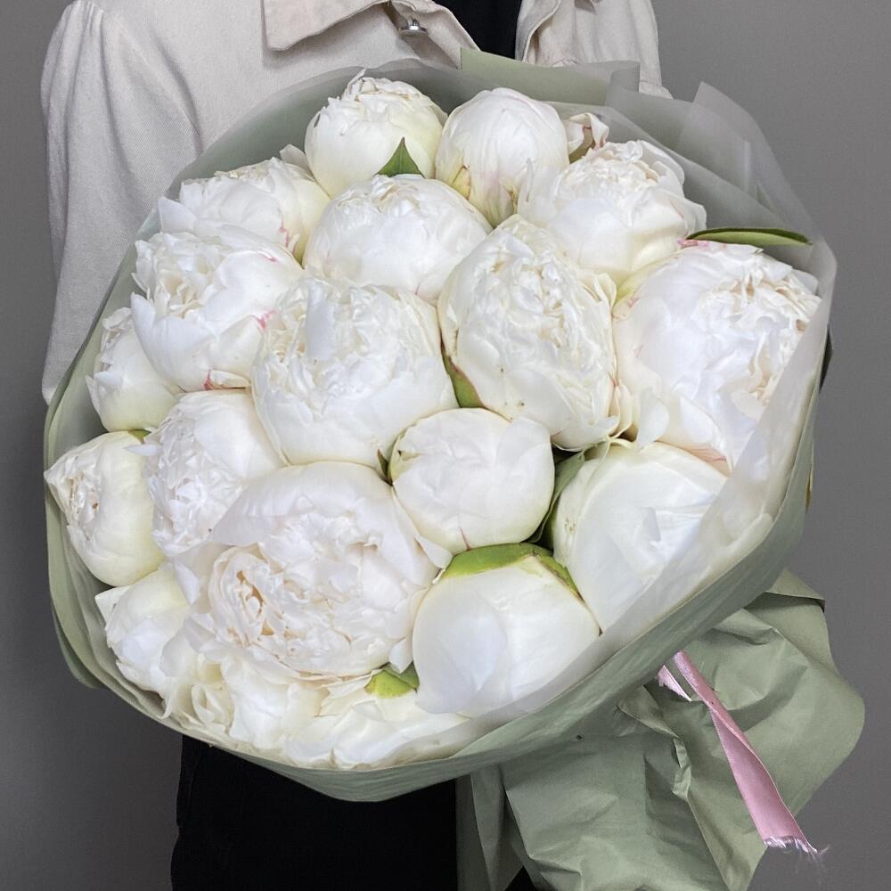 Букет из 19 белых пионов