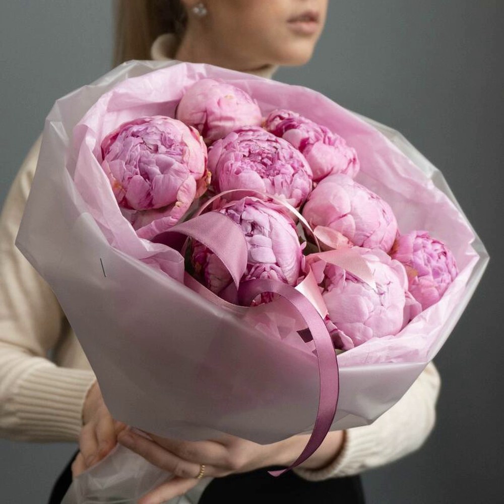 Букет из 9 нежно-розовых пионов