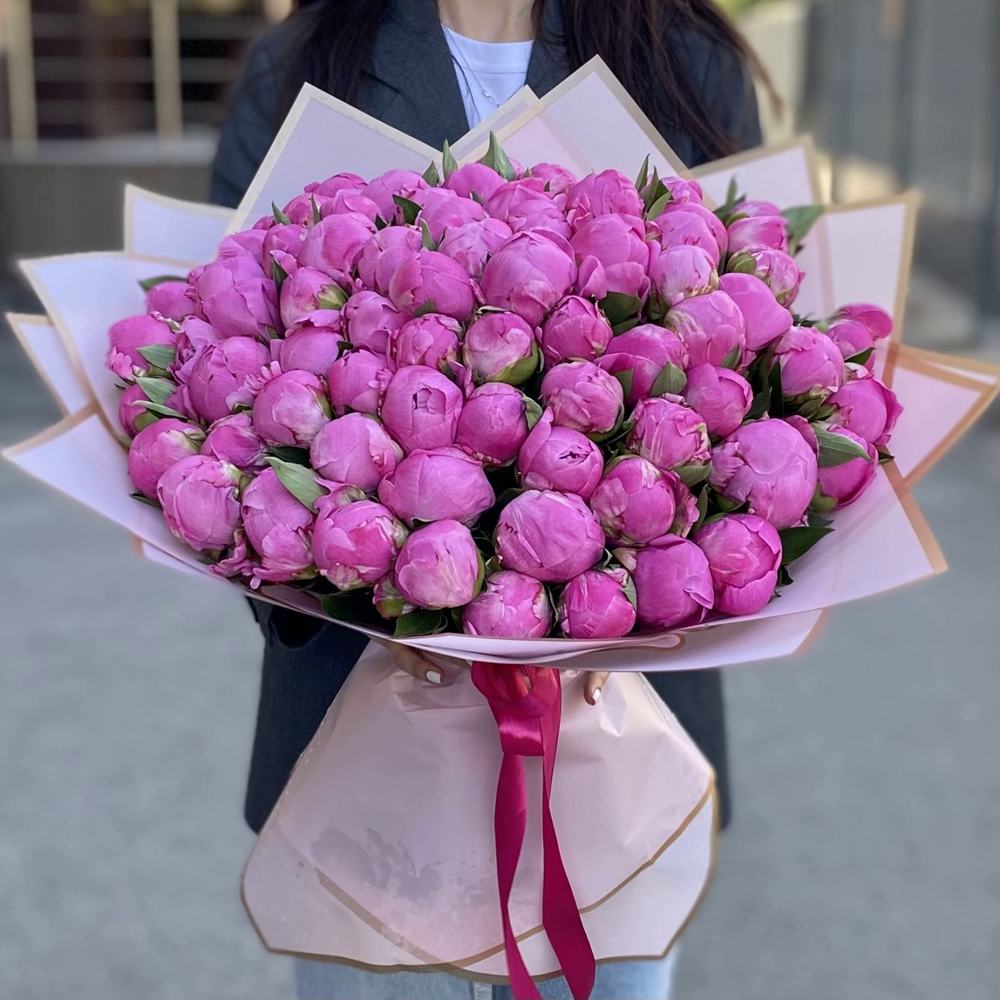 Букет из 101 розового пиона
