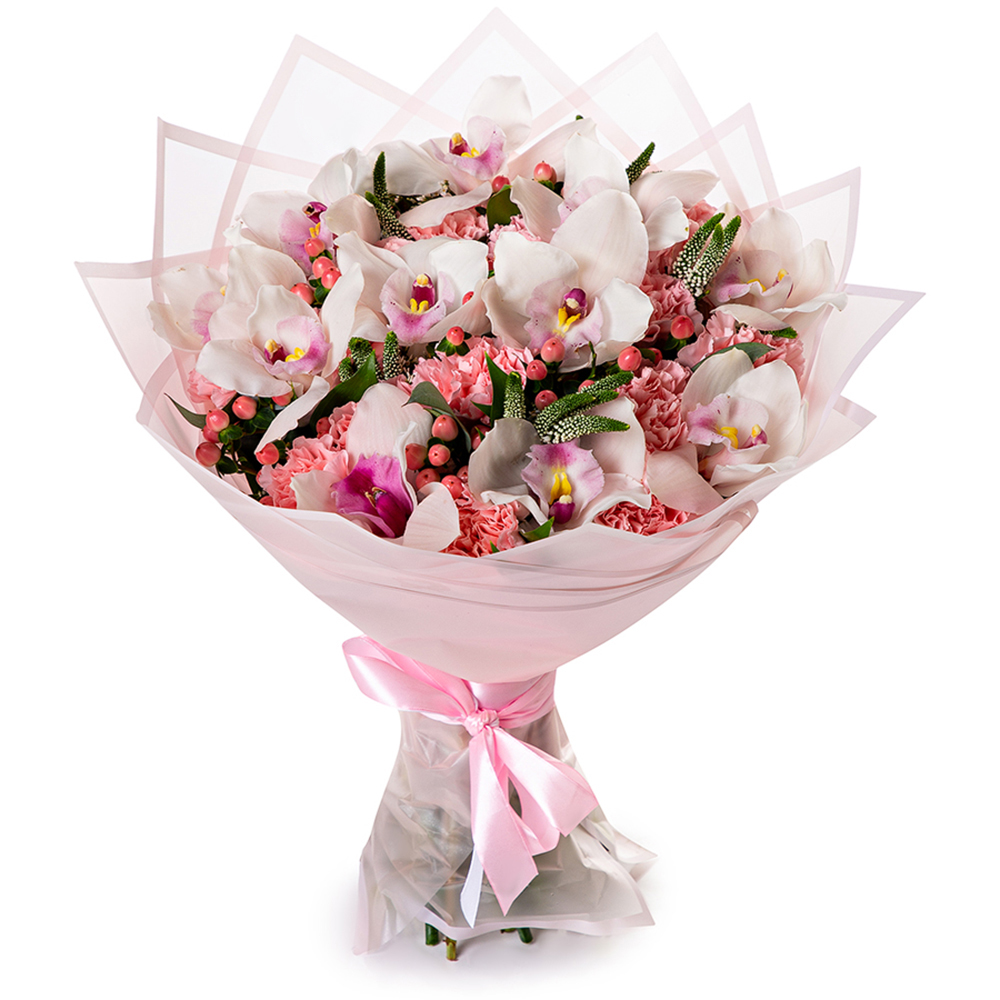 Букет с орхидеей и гвоздикой
