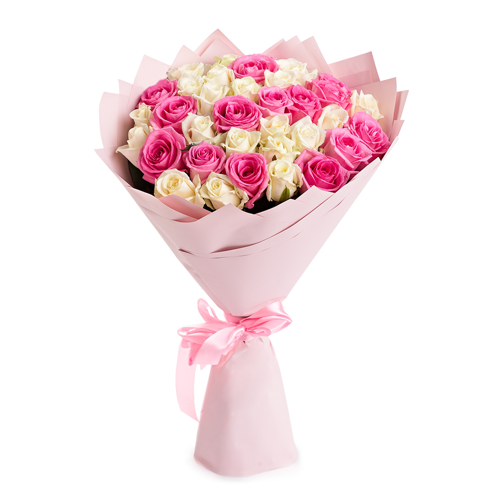 35 разноцветных роз 50 см