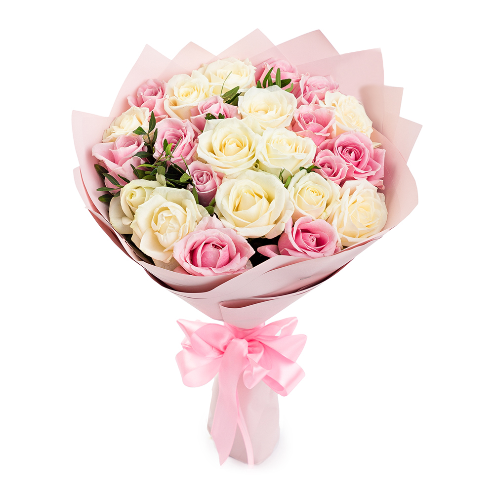 Букет из 25 разноцветных роз 50 см Воздушный пломбир