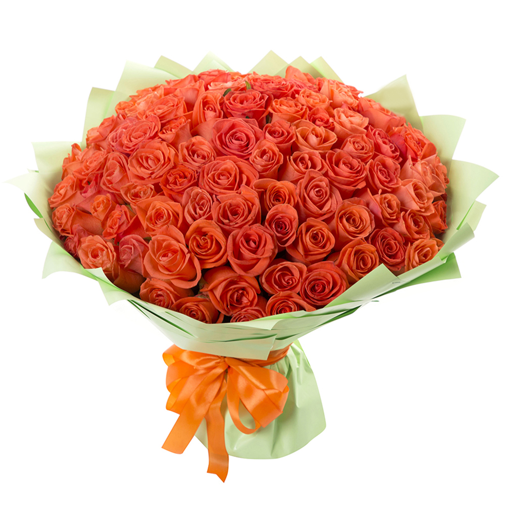 Букет из 101 оранжевой розы в пленке