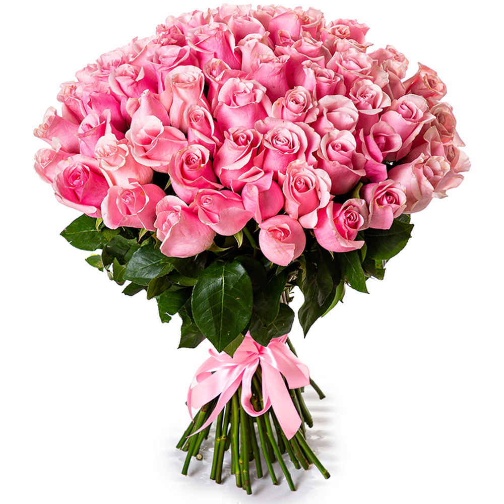 75 розовых роз Эквадор 70 см