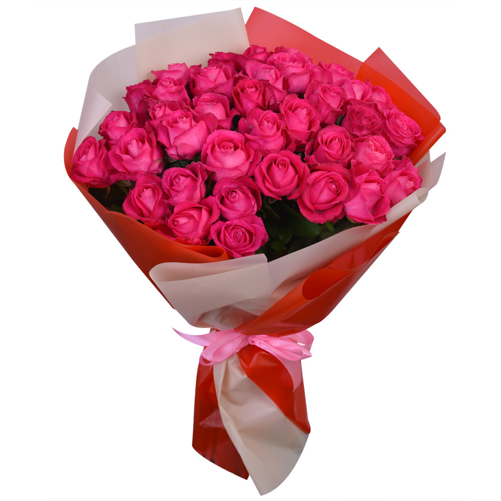 35 малиновых роз Premium 60 см