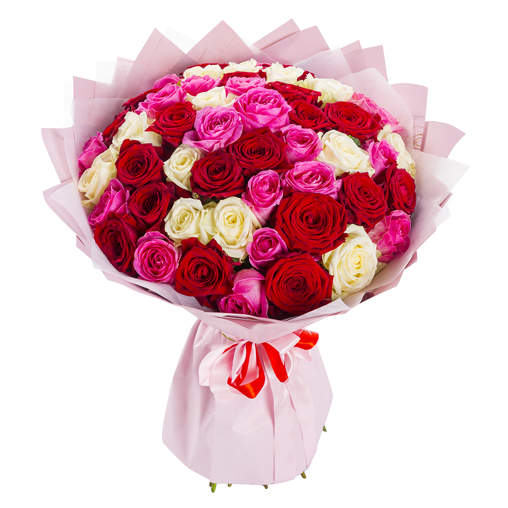 51 разноцветная роза Premium 60 см
