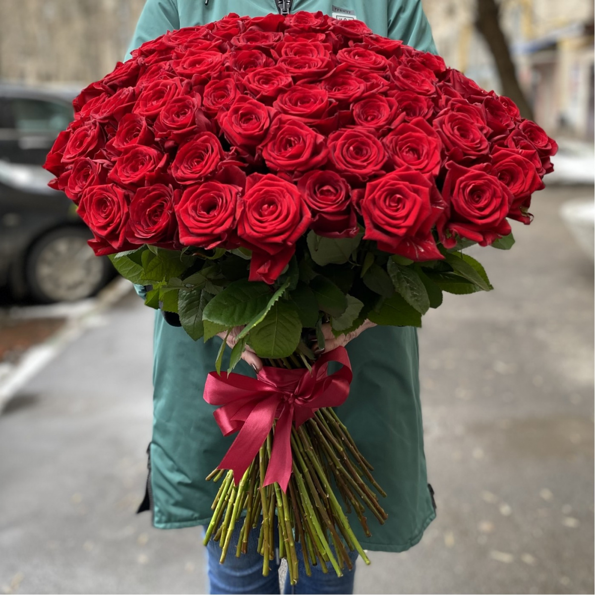 101 красная роза Premium 60 см.