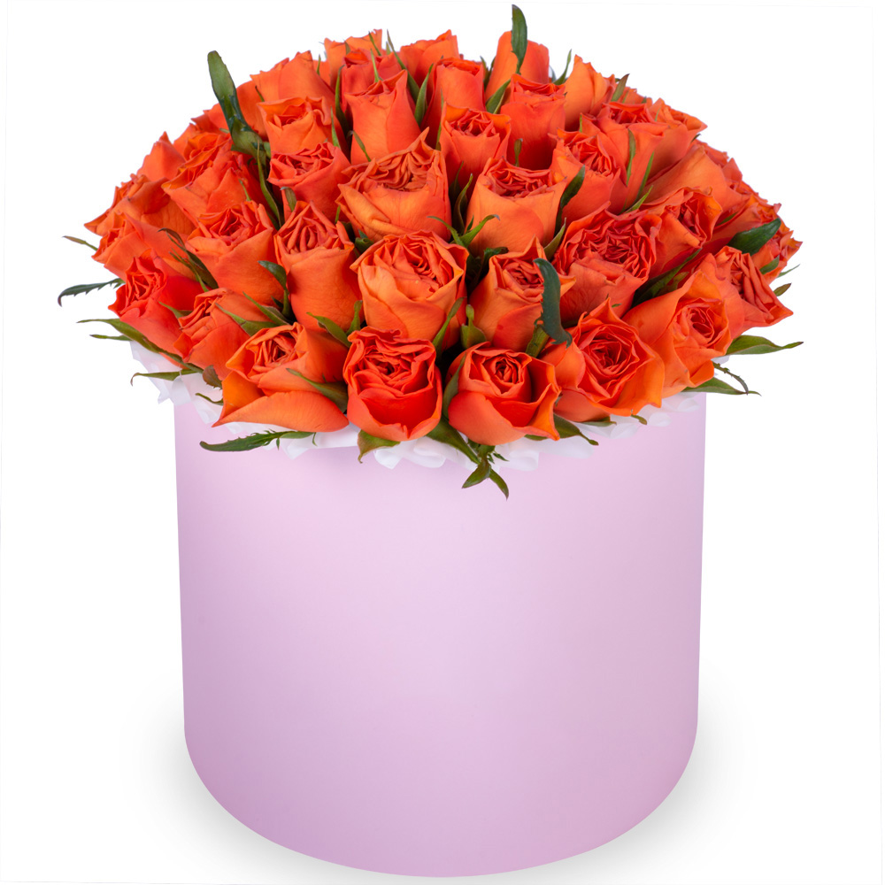 51 оранжевая роза в розовой шляпной коробке