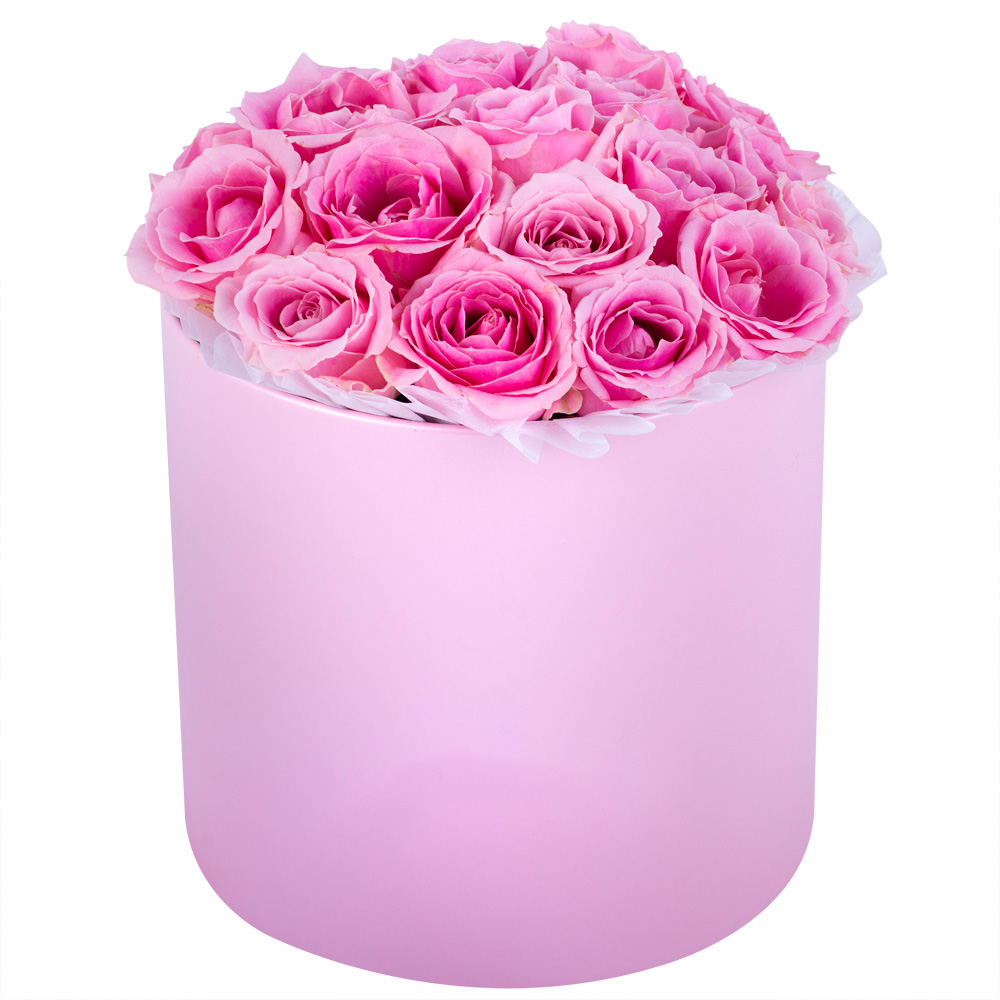 Букет из 19 розовых роз premium в розовой шляпной коробке