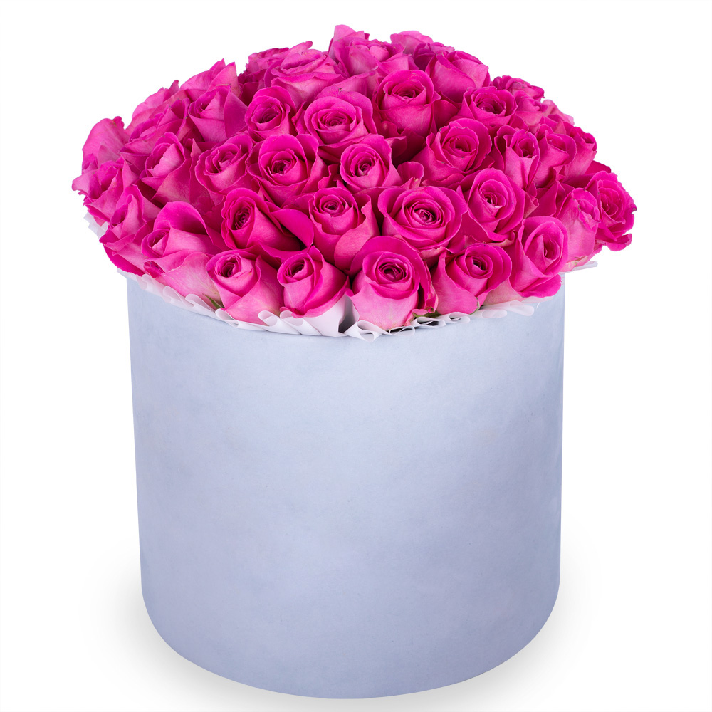 Букет из 51 розовой розы в серой бархатной шляпной коробке