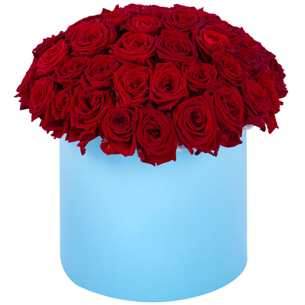 Букет из 51 красной розы premium в голубой шляпной коробке