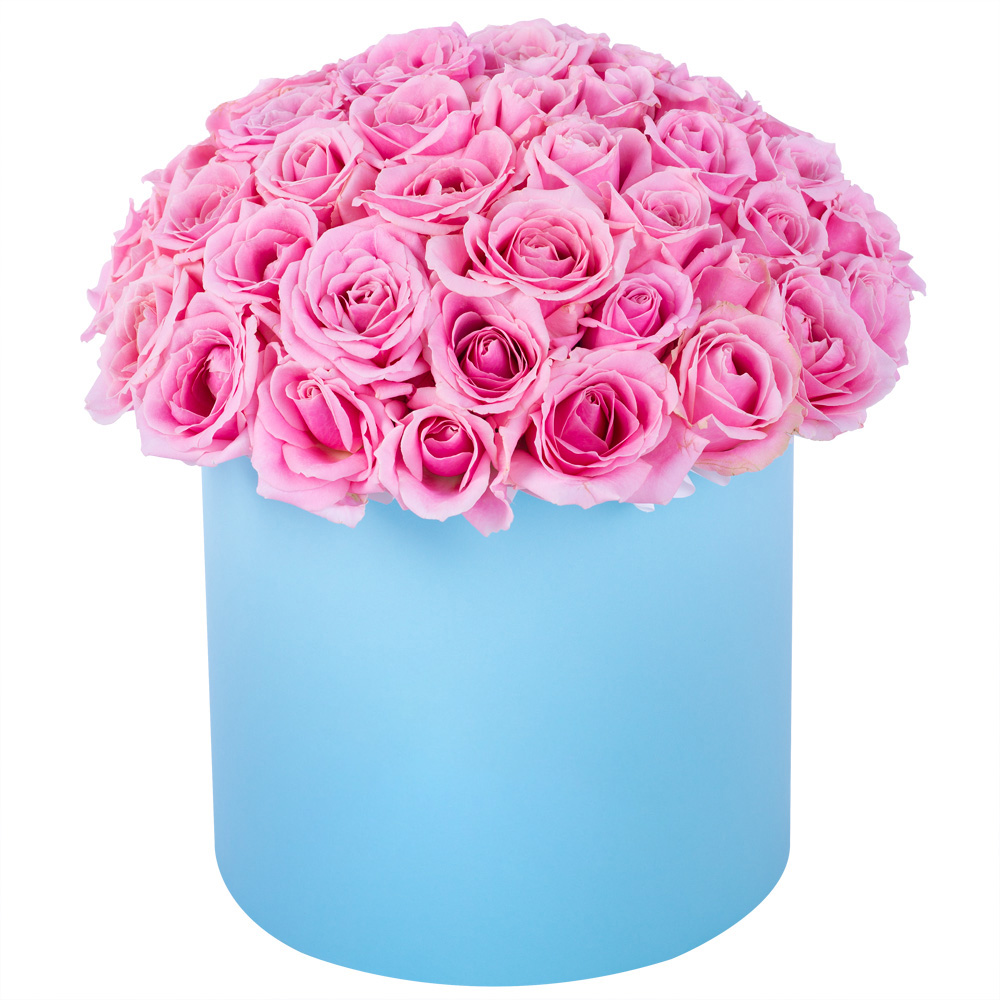 Букет из 51 розовой розы premium в голубой шляпной коробке