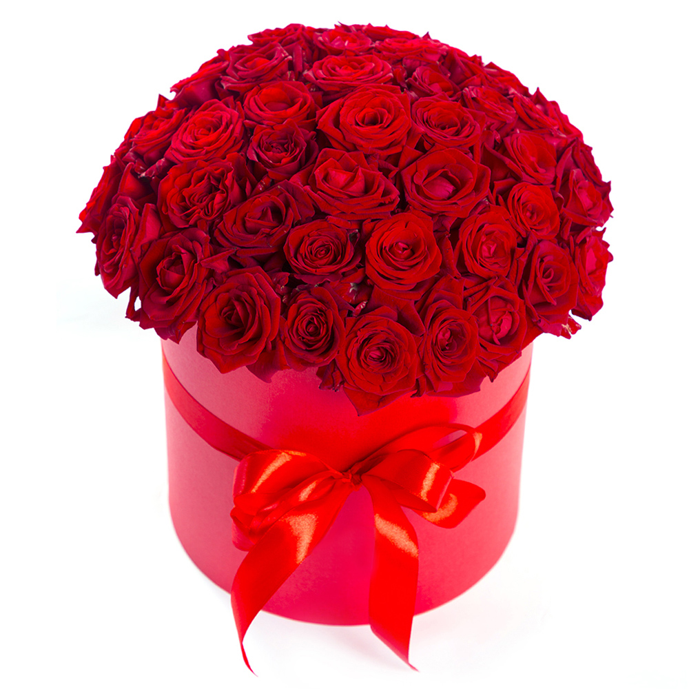 51 красная роза в шляпной коробке