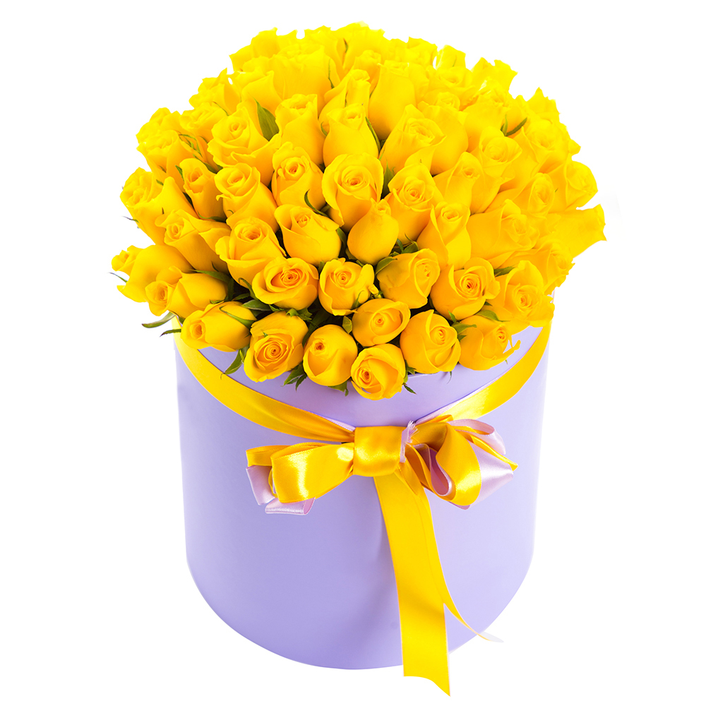 51 желтая роза в шляпной коробке