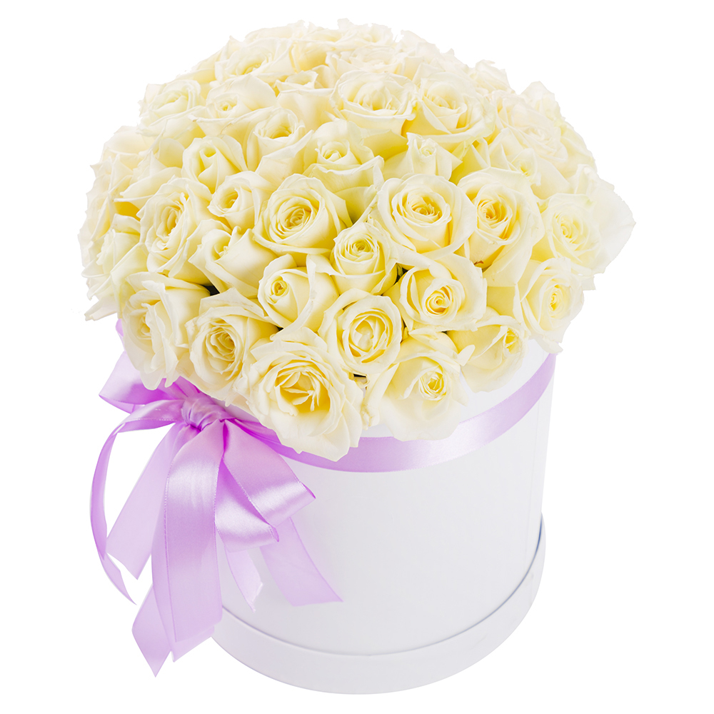 51 белая роза в шляпной коробке