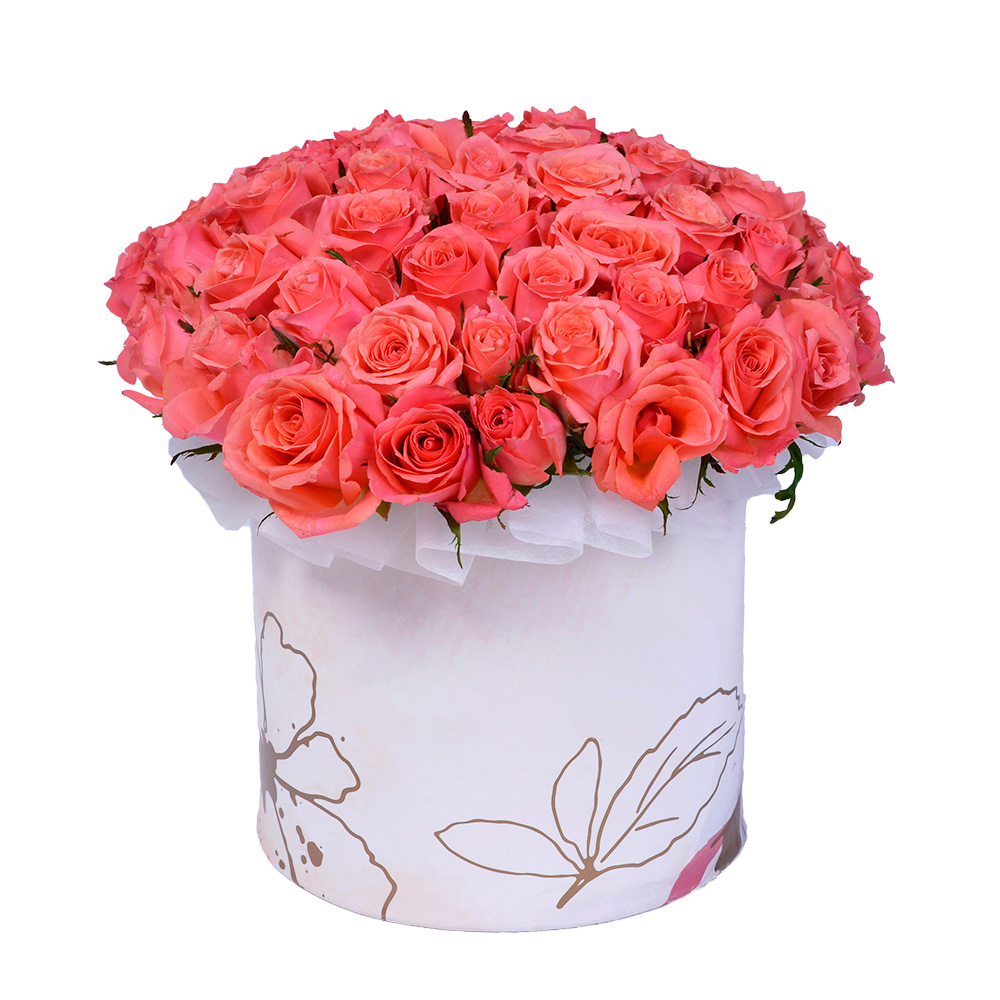 Букет из 51 коралловой розы в коробке на День матери