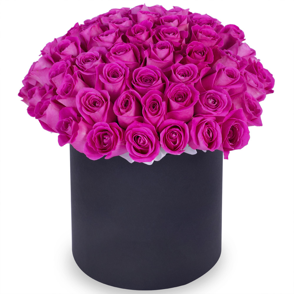 Букет из 75 розовых роз в черной шляпной коробке