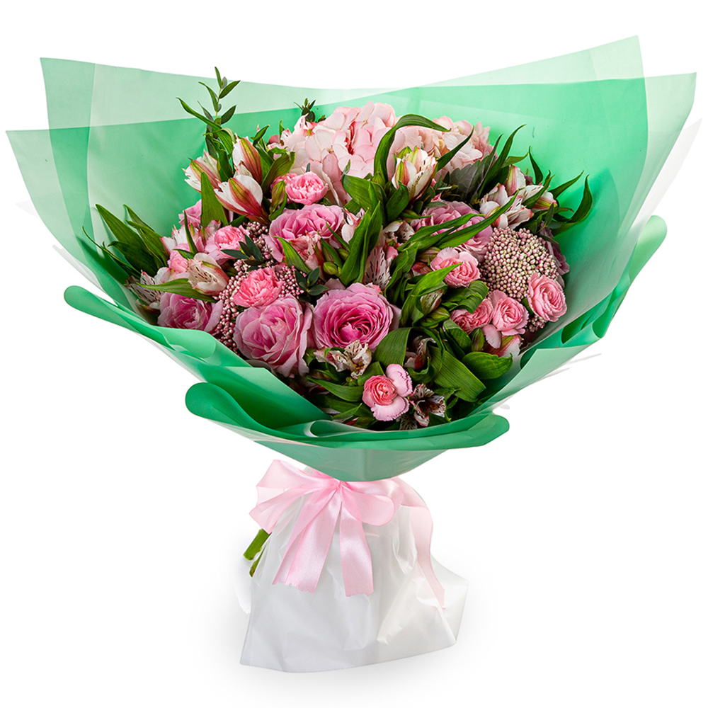 Букет из роз, гвоздик и гортензий