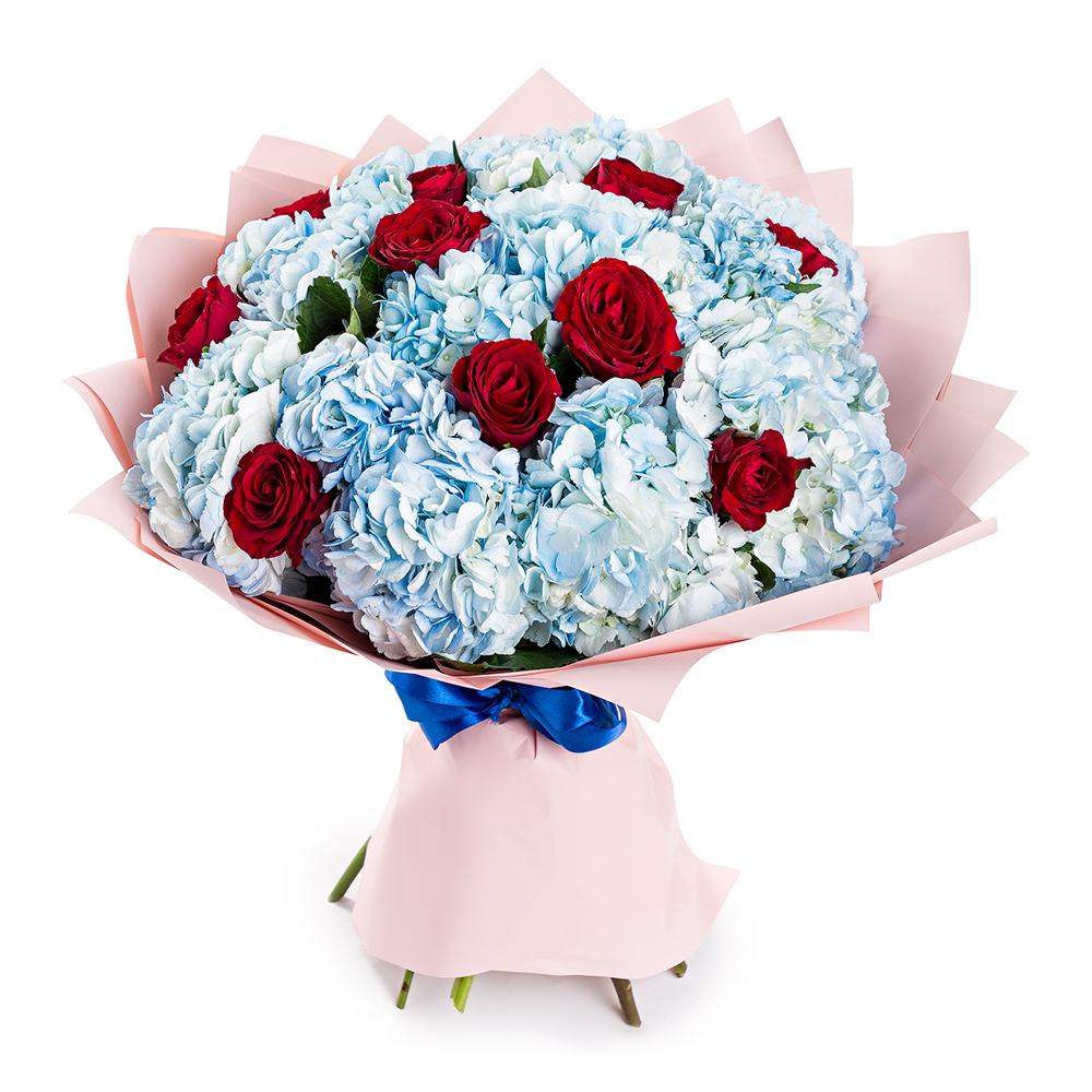 Букет из роз и гортензий