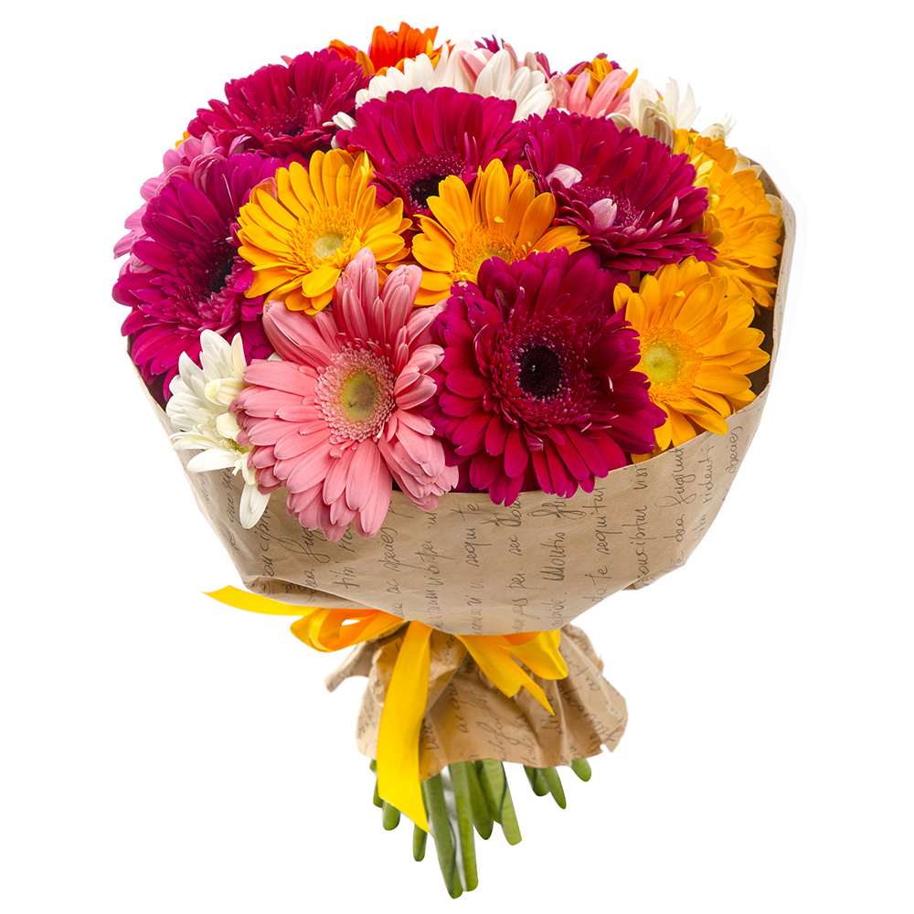 Букет из 21 разноцветной герберы
