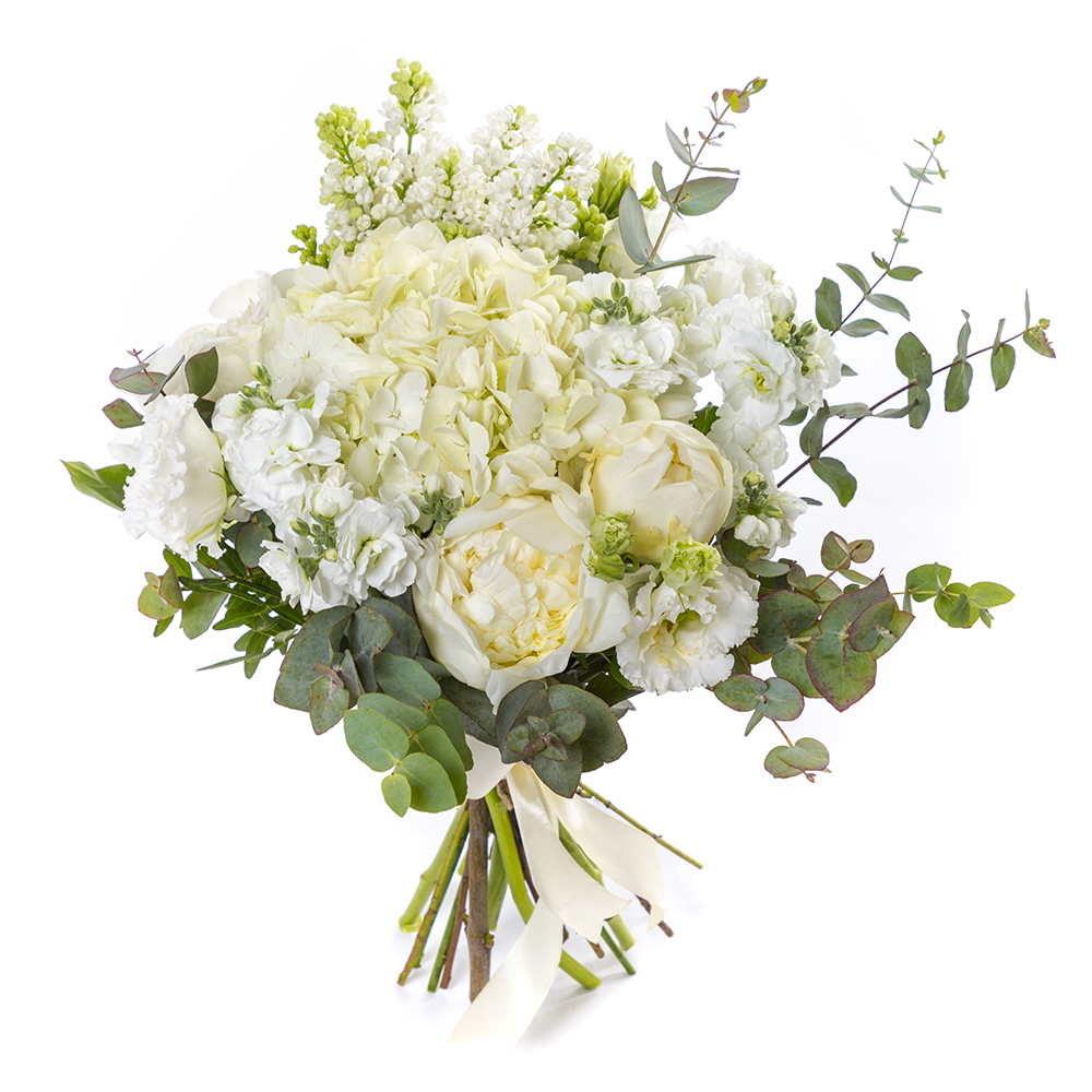 Букет из эустом, пионов и цветов матиоллы