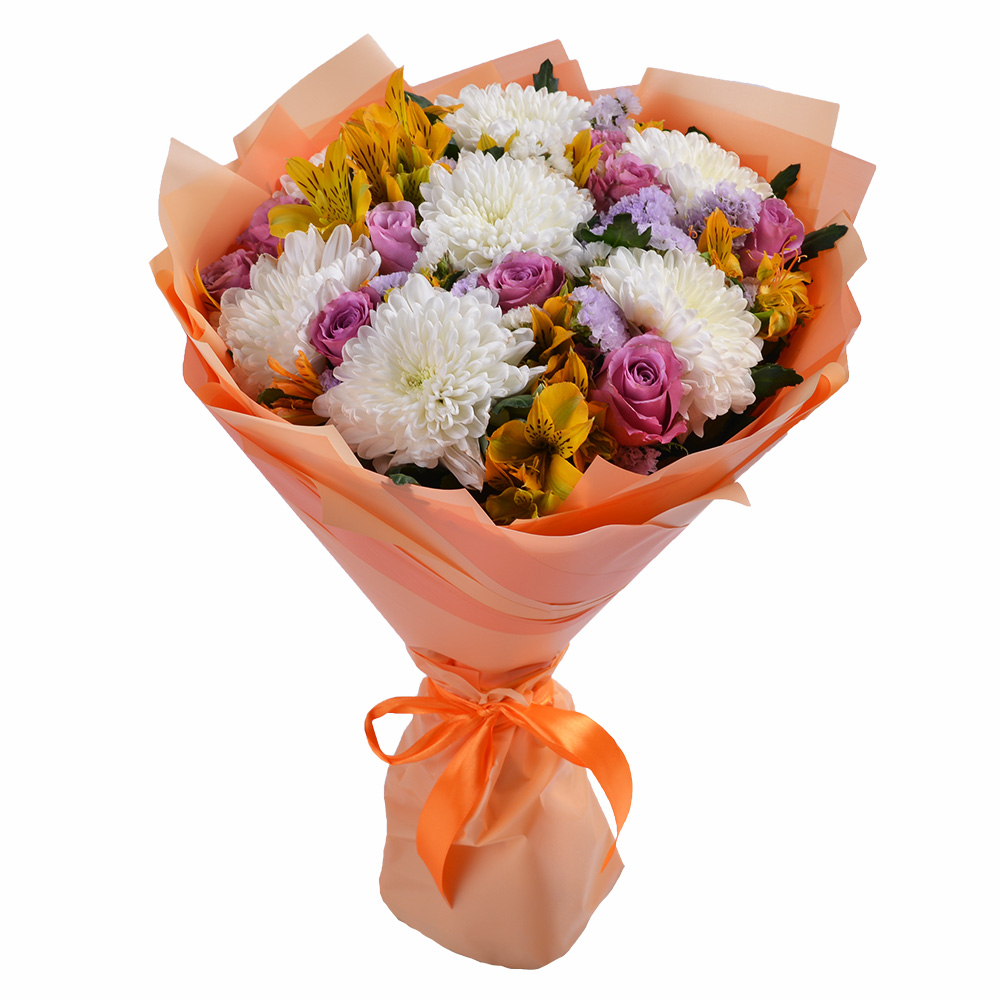 Букет из хризантемы, альстромерии и розы