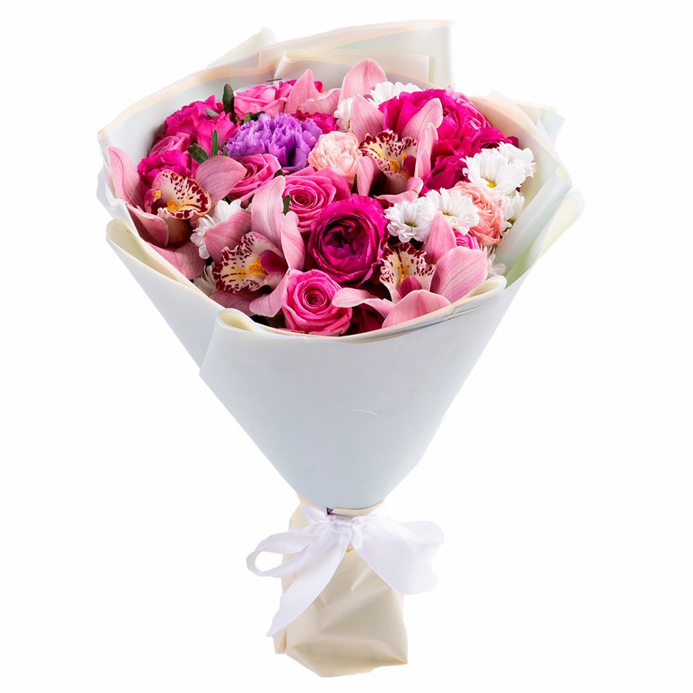 Букет из роз, сантини и орхидеи