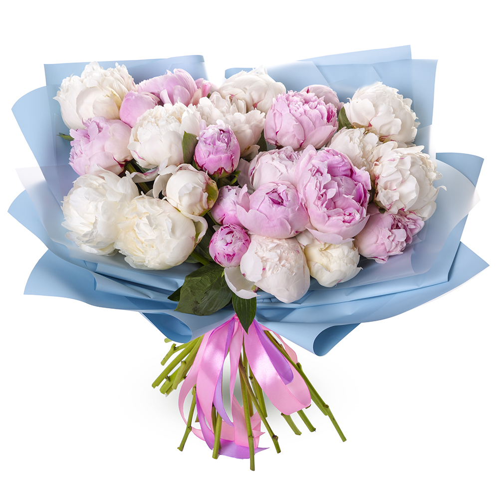 Букет из 25 разноцветных пионов