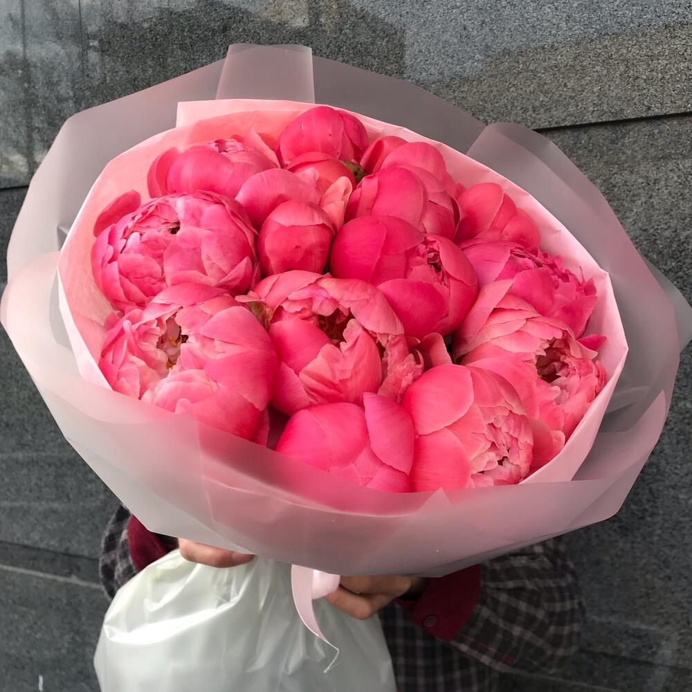 Букет из 15 коралловых пионов