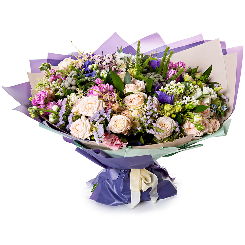 Букет из роз, эустомы и маттиолы