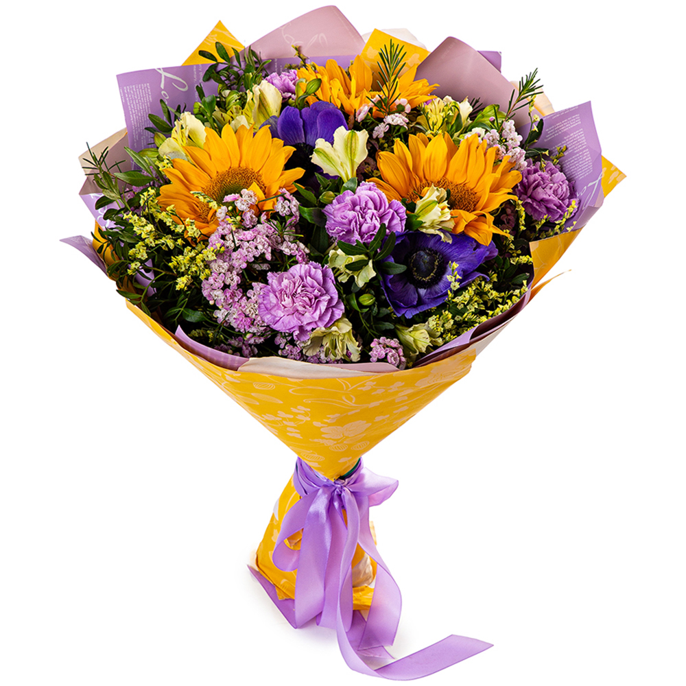Букет из анемонов, альстромерий и гвоздик