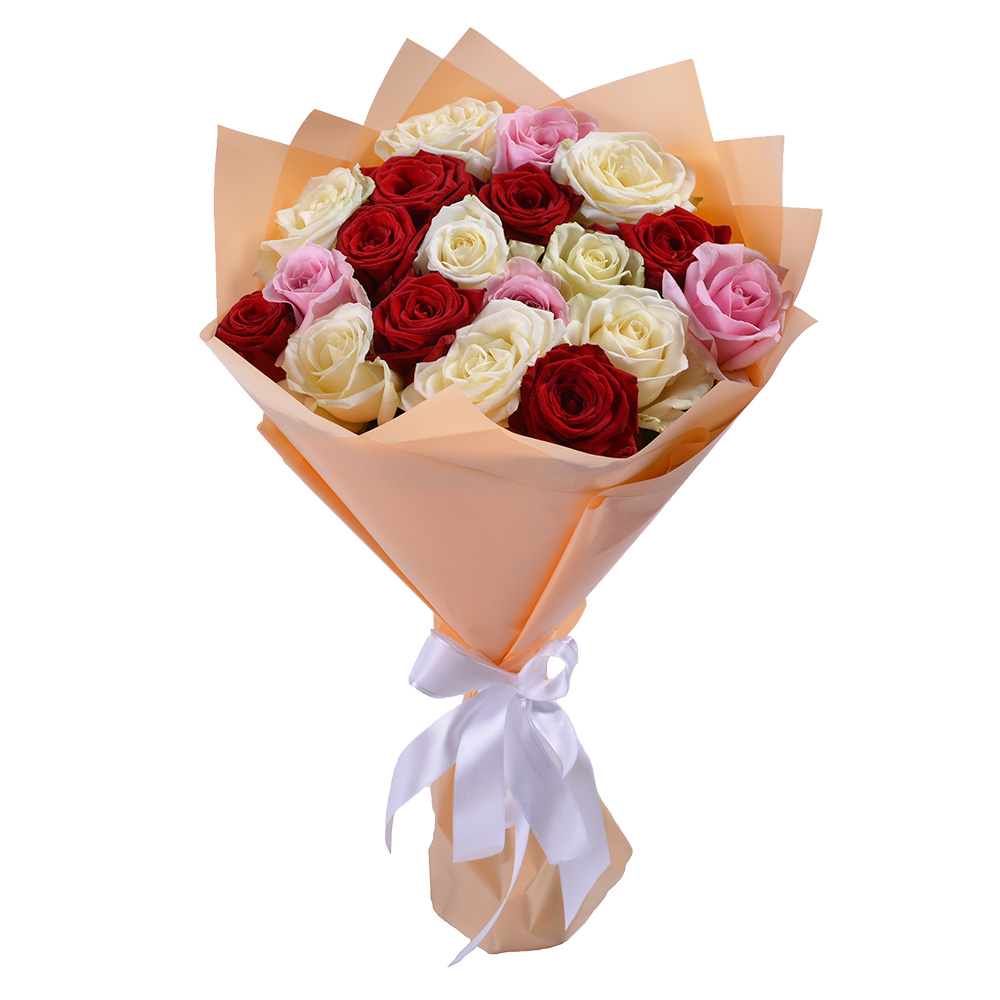 19 разноцветных роз 50 см