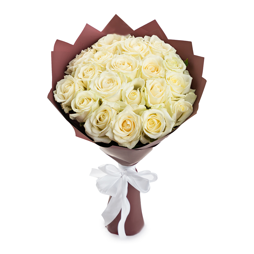 25 белых роз Premium 50 см