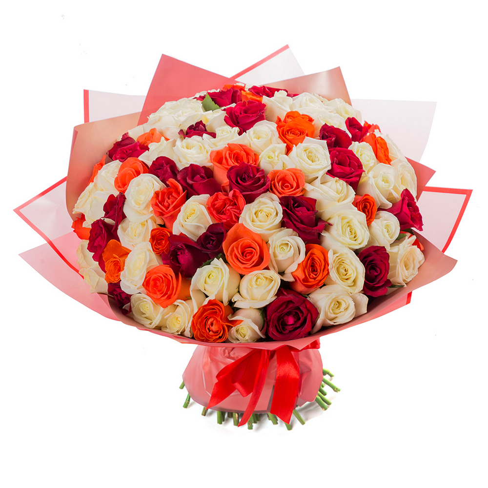 Букет из 101 разноцветной розы
