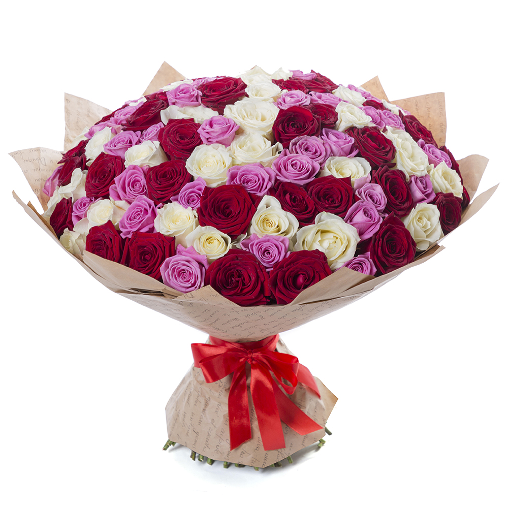 Букет из 101 разноцветной розы 50 см