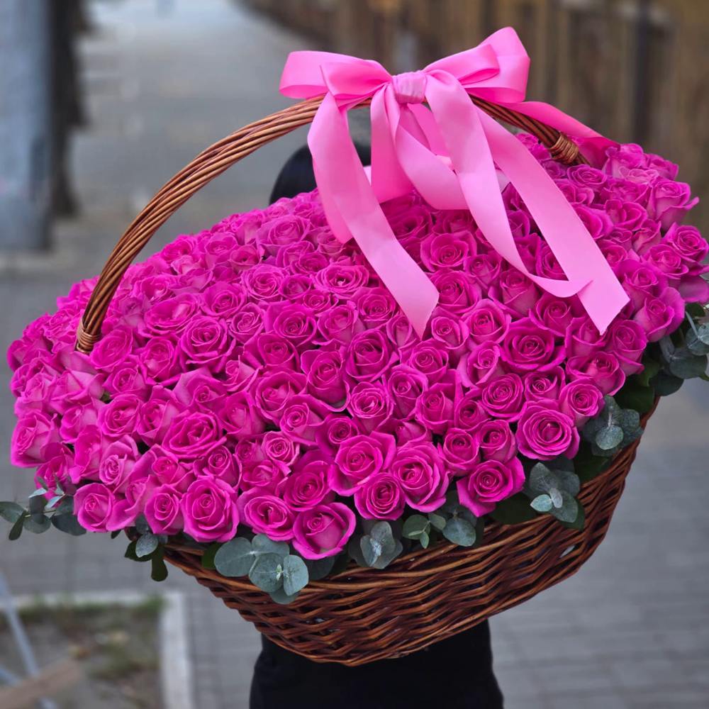 201 малиновая роза в корзине