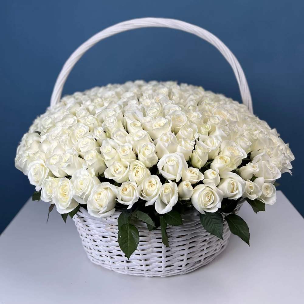301 белая роза в корзине