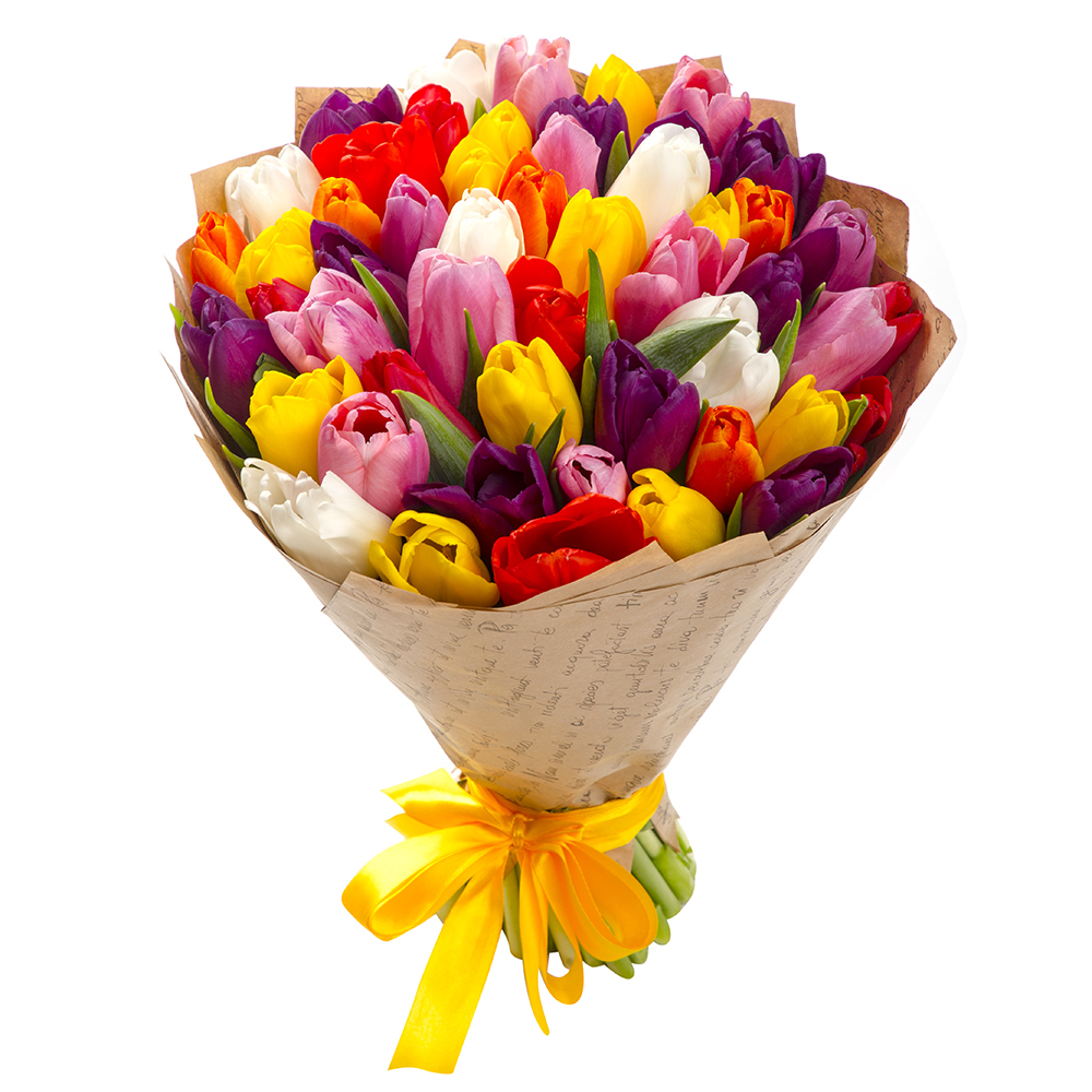 51 разноцветный тюльпан в крафте